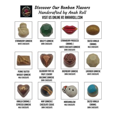 •Strawberry Prosecco: Strawberry Prosecco caramel, vanilla bean ganache